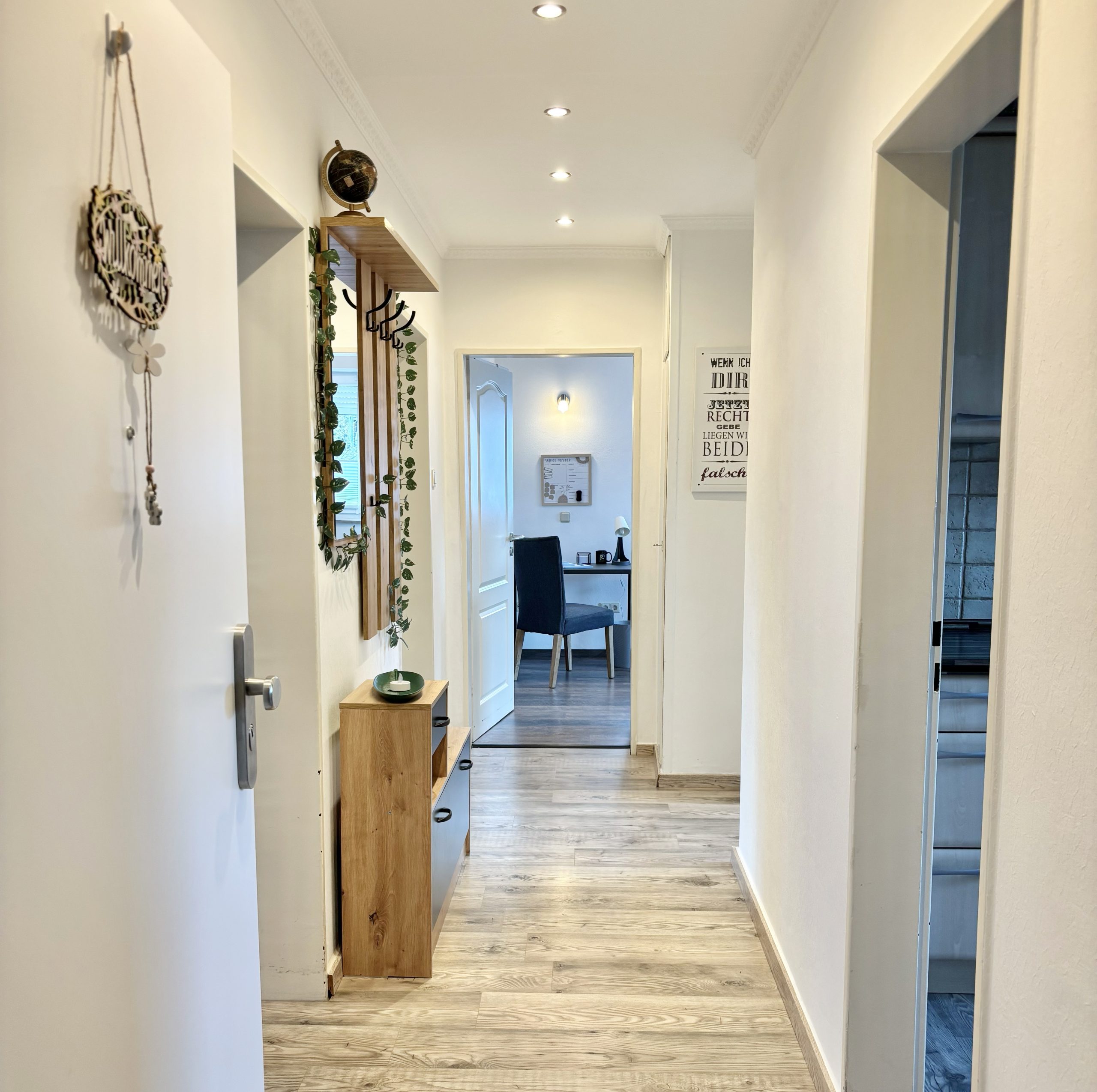 Ein offener Wohn- und Essbereich mit Küche sowie ein großzügiger Balkon schaffen Platz für Gemeinschaft und Rückzug gleichermaßen.