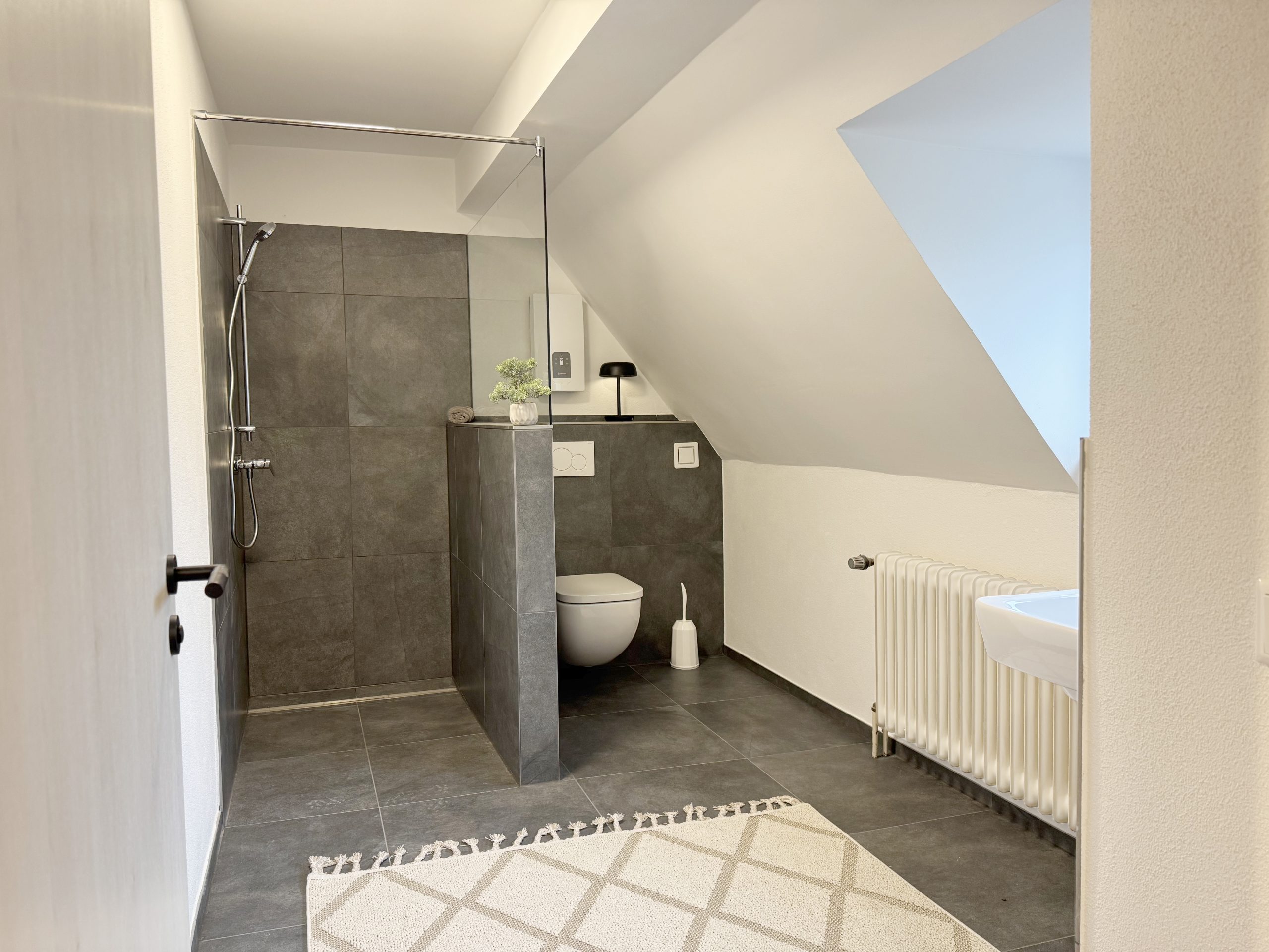 Das Bad teilst du dir – aber die Zeit darin gehört dir. Ob du schnell unter die Dusche springst oder dir ein paar Minuten zum Wachwerden nimmst: Hier kannst du runterkommen, dich frisch machen und für einen Moment den Kopf frei bekommen. Rücksicht ist wichtig – aber genauso, dass du dich wohlfühlen kannst.